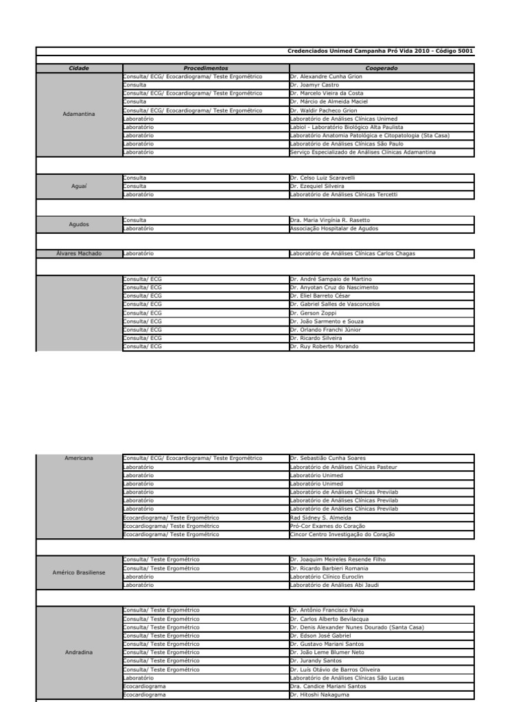 Campanhaprovida2010 Tabelacredenciadounimed Remedio Especialidades Medicas